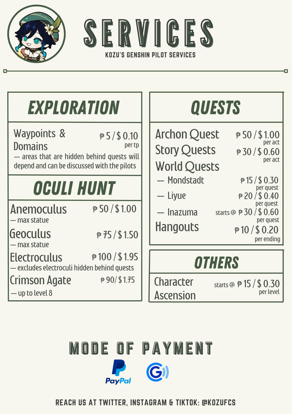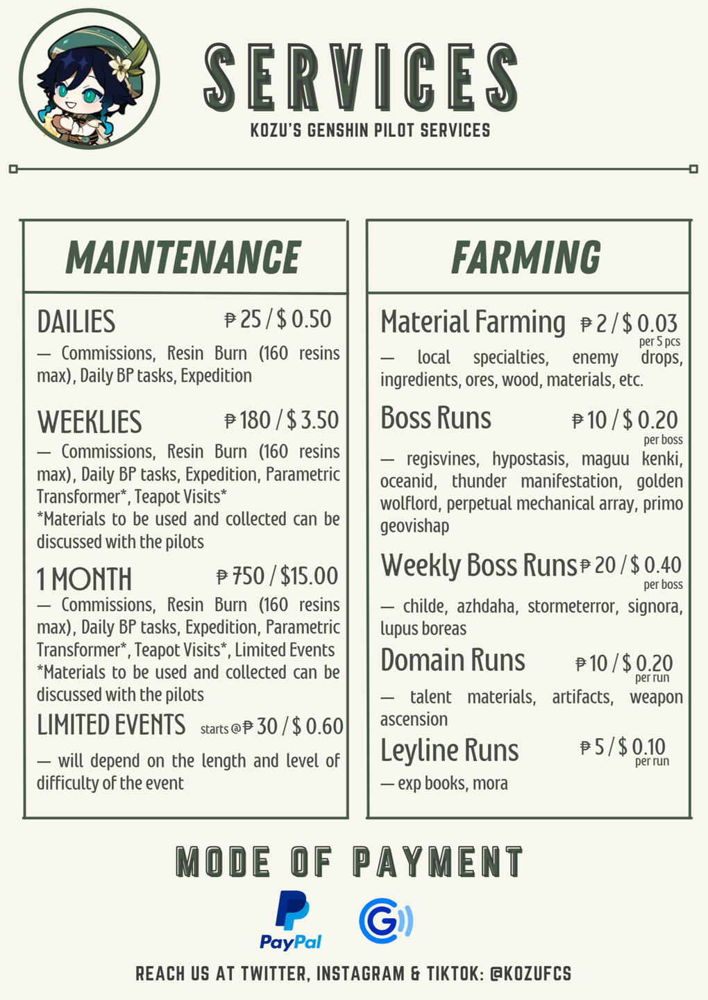 KOZU'S GENSHIN PILOT SERVICES